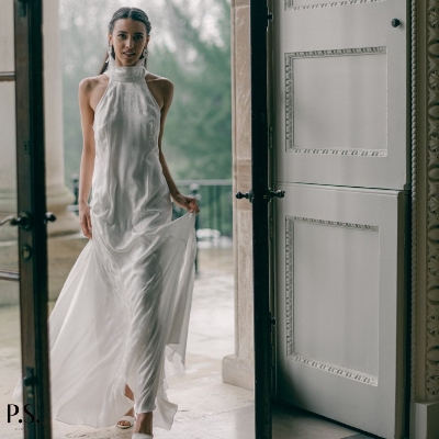 Designer Paul Costelloe has unveiled his first bridal collection, Primavera plus a stunning new hosiery collection at London Fashion Week. The beautiful bridal gowns each feature floral-inspired names including Poppy, an ivory jacquard gown with a halter neck cross-over neckline and an elegant Elizabethan-inspired full skirt. Poppy also boasts an exaggerated bow at the back and is finished with buttons trailing down the bodice. Mulberry is a duchess satin strapless dress with a box-pleated finished with a fashionable side split and a bow at the back. Daffodil is a pretty design featuring a satin bodice with a pleated band, silk organza roses and a silk organza circular flowing skirt.