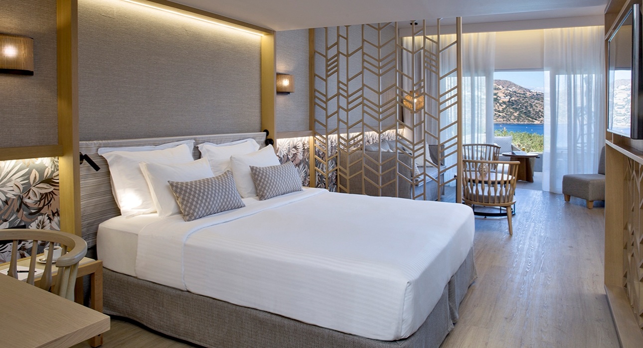 After just a 50-minute transfer from Heraklion Airport, we arrived at our home for the next few days and were excited at what we were greeted by. This beachfront resort features the most amazing sea views overlooking Mirabello Bay, that are framed by picturesque mountains and our room, like many here, overlooked that very view. We were lucky to experience a stay in one of the Wyndham Collection Sea View Maisonettes in the resort's Village. If you're honeymooning here, I highly recommend a stay in a maisonette or bungalow. Each of these feature private infinity pools and sun loungers and many, like ours, looked out to the Mediterranean – perfect! The resort will even arrange for a private floating breakfast upon request to make your first morning here as a married couple even more special. The rooms in the main building are just as gorgeous, with either sea, garden or bay views, all boast modern interiors and there's also the option of a wellness room with your very own rooftop jetted pool – the accommodation options are endless.