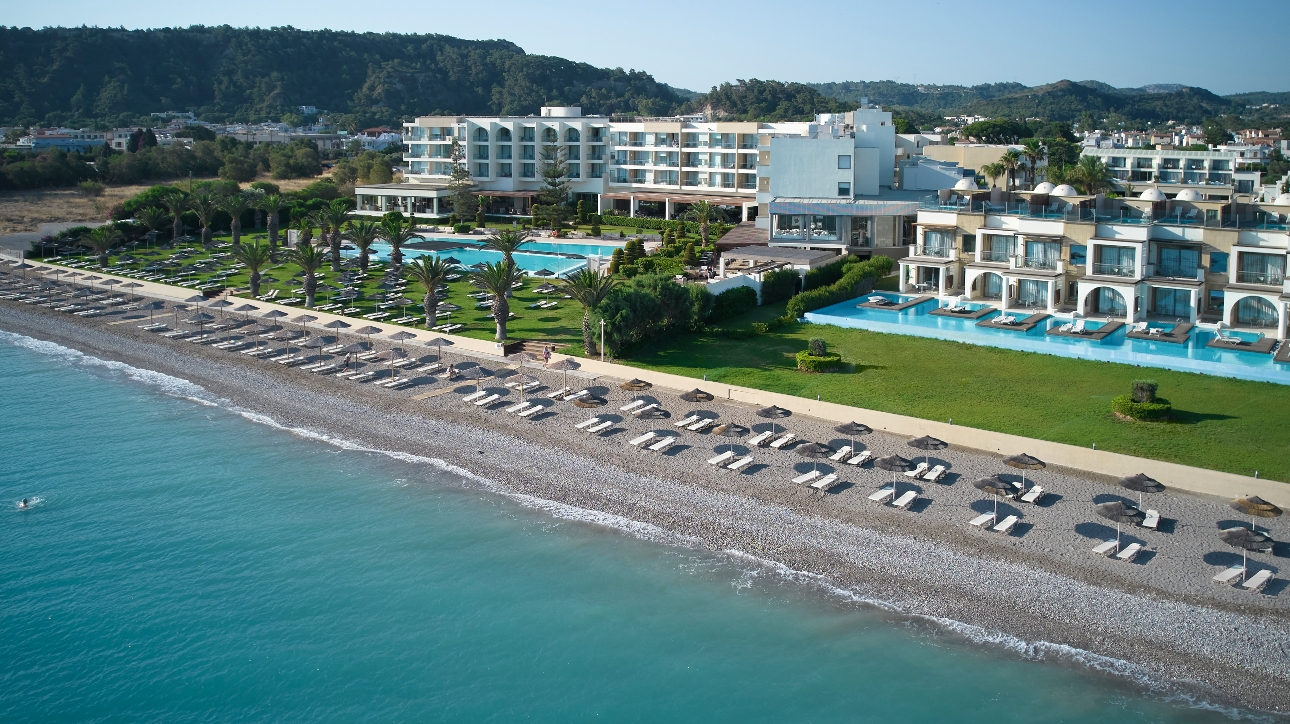 Approaching Rhodes by air, you'd be forgiven for missing a bird's-eye view of the Ixian Grand & All Suites thanks to the beauty of Greece's largest island, but for the eagle-eyed travellers you can spot the hotel due to its inimitable layout and luxurious beachfront private pool suites nestled luxuriously on the beach of Ixia Bay, just metres away from the sea. Ixian Grand & All Suites is only 7km away from Rhodes town and the Medieval City of Rhodes, as well as being a mere 10-minute drive from Filerimos, one of the three ancient cities of Rhodes. Overlooking the Ixia Bay and Aegean Sea, this hotel has the beauty of being adult-only, so is the ideal destination for a honeymoon offering total relaxation.