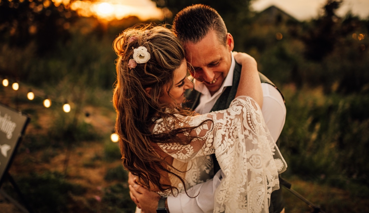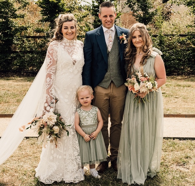 Emma and Bradley met each other online. "We had a short first date due to being interrupted by a pub quiz," says Emma. "I was attracted to Bradley because of his kind nature and good looks."