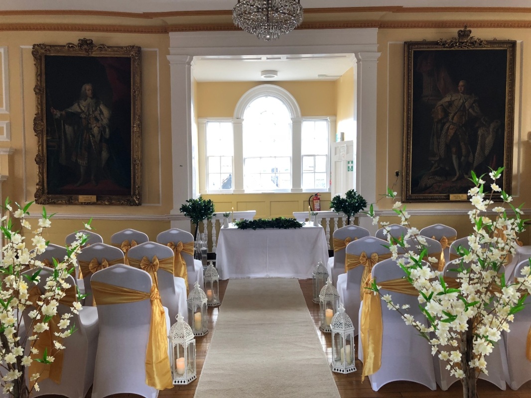 For something out of the ordinary for your big day, how about a former court house? Built in 1745, Huntingdon Town Hall is a beautifully restored Grade II* Georgian building offering a distinctive setting for a wedding with a difference. Set in the heart of Huntingdon in the historic Market Square, the landmark venue has two renovated court rooms, both licensed for ceremonies, ideal for intimate weddings. For larger ceremonies and receptions, the elegant Assembly Room and Council Chamber cater for wedding parties of up to 120 family and friends.The Assembly Room, a grand ballroom on the second floor, boasts three crystal chandeliers and a eight portraits held by the council as custodians for the town. Formerly the tea room, it can hold up to 75 people. The most prominent feature of the Council Chamber is the special board featuring the names of the town's majors since 1729. Also recorded in this room are the names of the various Town Clerks and, more significantly, the names of some of those who fell in the service of their country in two World Wars. This room can hold a maximum of 75 people.
