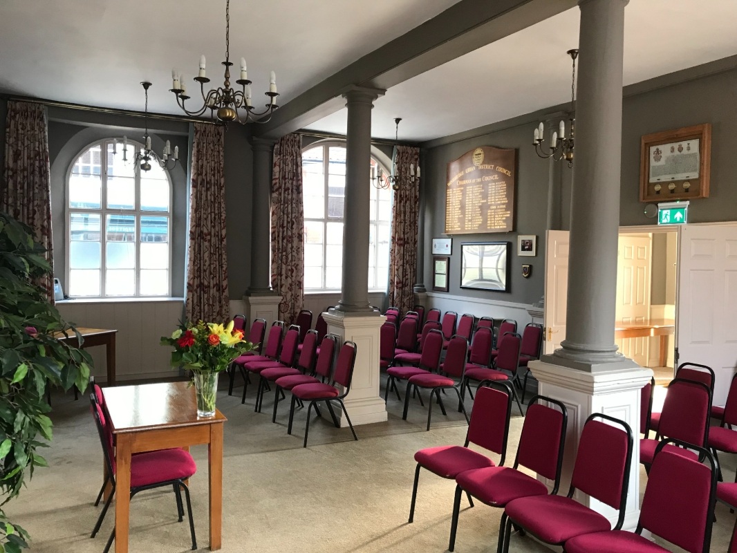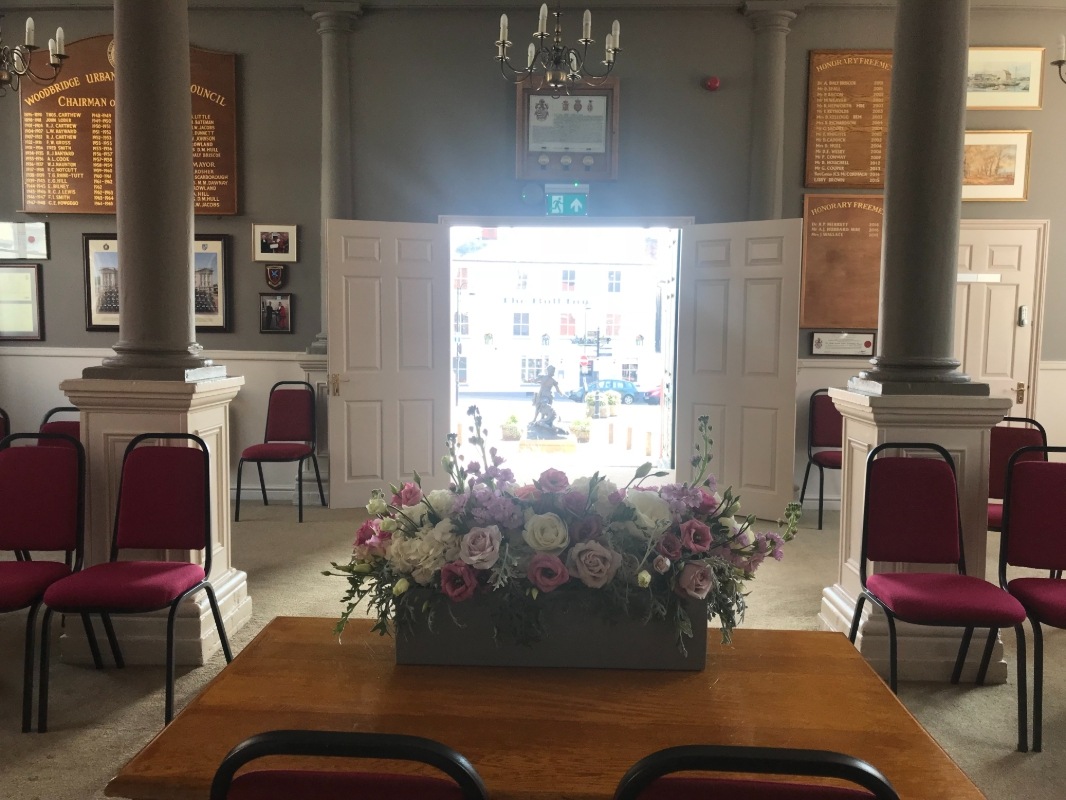 Say 'I do' immersed in history at the Shire Hall Council Chamber in Woodbridge. The magnificent Grade I listed redbrick building is a local landmark with its impressive black-iron railing, stone steps and balcony. Originally built by Thomas Seckford around 1575, the arched entrance doors stand proudly overlooking Market Hill and its historic neighbours. The fabric of the building has undergone many changes over the centuries, and the upper part was formerly used for judicial purposes while the ground floor served as an open corn market. Today it provides an intimate and romantic space for wedding ceremonies. With a wealth of stunning features including six large candelabra hanging from the tall ceiling and panelled walls, ceremonies take place in the Council Chamber, a large airy room which can hold up to 69 people seated, including the wedding party.