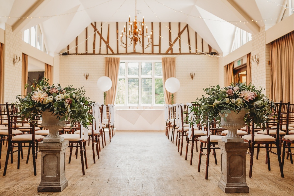 The 16th-century listed country house offers the ideal mix of comfort and luxury steeped in Tudor history. The Great Hall oozes character and charm with its oak panelling, high ceilings, huge open fireplace and fabulous views. Overlooking the lake and gardens, you can tie the knot here and host a reception for 180 guests or up to 250 teamed with the beautiful marquee dining space in the adjacent garden pavilion. The hall has a separate entrance from the hotel as well as its own bar, toilets and cloakroom, so you and your loved ones can celebrate in style, comfort and privacy.