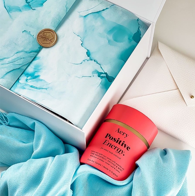 As well as their beautiful stationery the hampers are filled with other items designed to work together perfectly including Aery aromatherapy candles and super soft pashminas to snuggle up in.