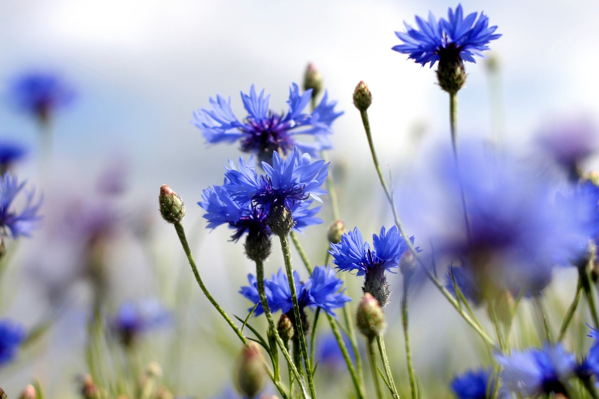 Cornflowers are an ideal choice for wildflower-inspired boho bouquets and countryside weddings due to the vibrant blue blooms.