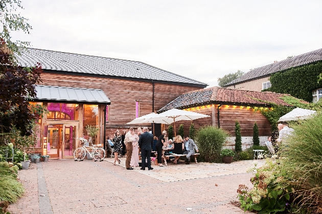 Outside the front of the barn is a sunny, spacious courtyard landscaped in soft romantic hues, ideal for confetti, sparkler shots, drinks and canapés. Behind the building lies the secret walled garden, with paths and a lawn lined with buddleia and lavender plants – the perfect spot for enjoying the venue’s in-house garden games.