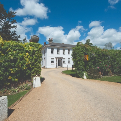 Suffused with light, the College Hall is decorated in elegant pastel shades, complemented by pale wooden furniture. It is topped by an eye-catching barrel-vaulted ceiling with elaborate white plasterwork. Twin, full-height oriel windows are boarded by romantic trailing clematis and wisteria and offer views across the grounds with room for 150 people for the wedding breakfast.