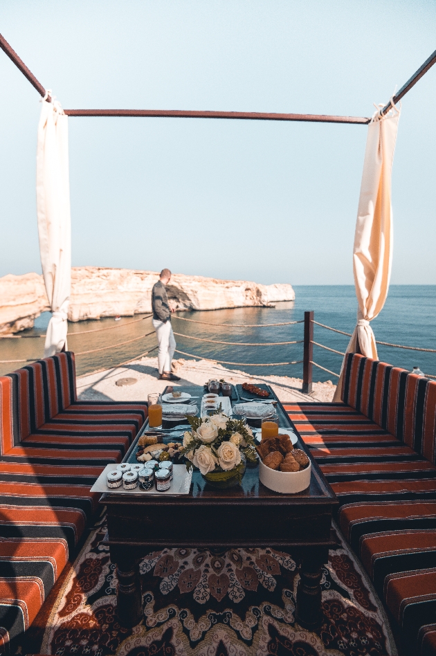 ·A honeymoon breakfast on the beach. An experience not to be missed, embrace newlywed life before the sun gets too hot while looking out over the famous Muskat Arch.